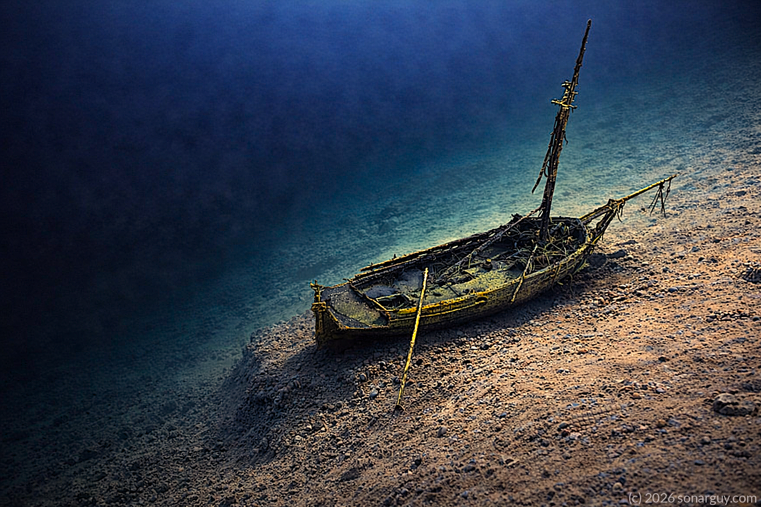 Two shipwrecks one on top of the other.