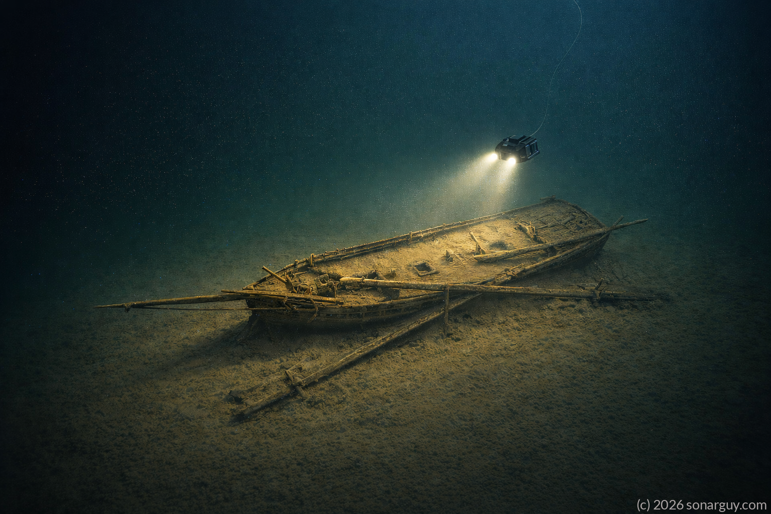 We came across this target on Sept. 9, 2023 doing a sonar survey and later returned with a ROV on Sept. 15, 2023 to see what it was.  It turned out to be a 32 foot late 1960s era Sea Rover houseboat that sank on Sept. 14, 1973.  It rest in 500 feet of water on the bottom of Lake Ontario