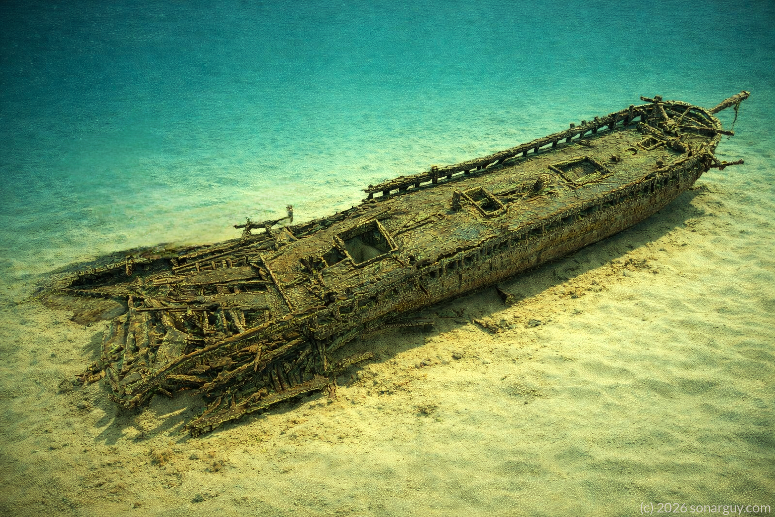 3D image of wreck Multi-Beam Sonar Image More